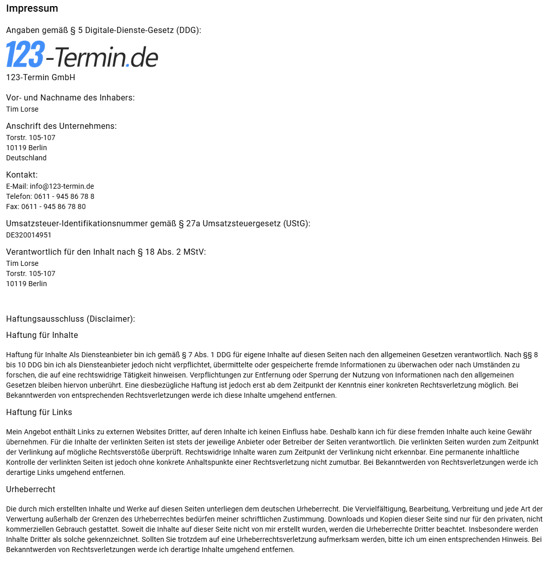 Impressum - 123-termin.de